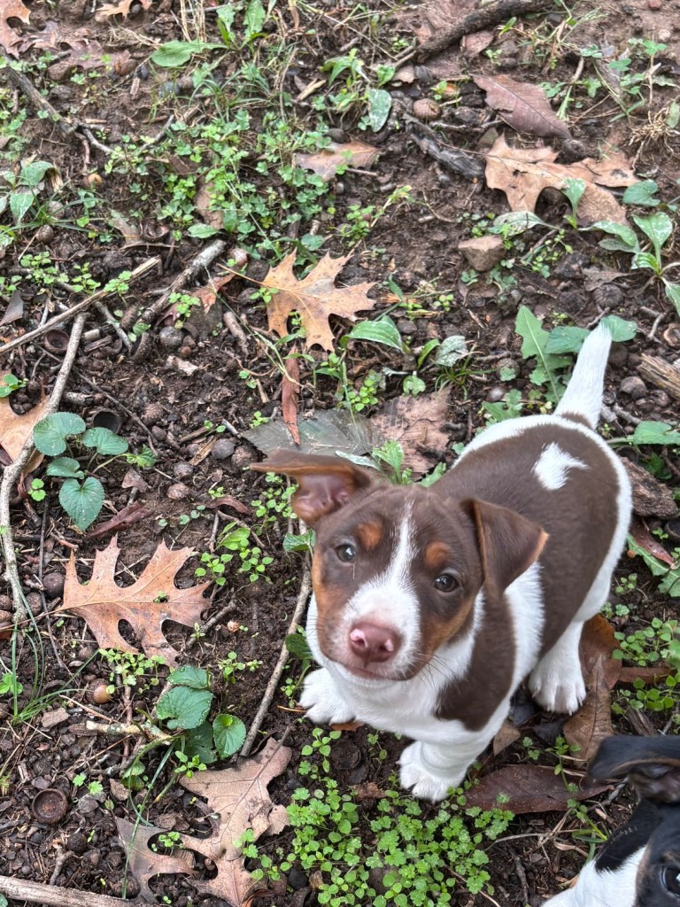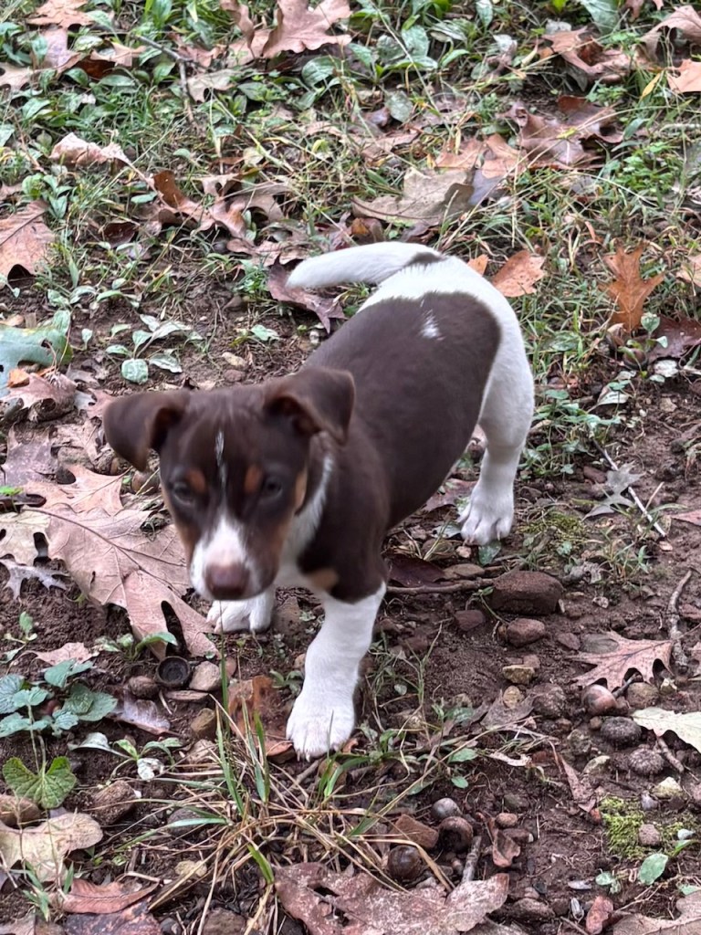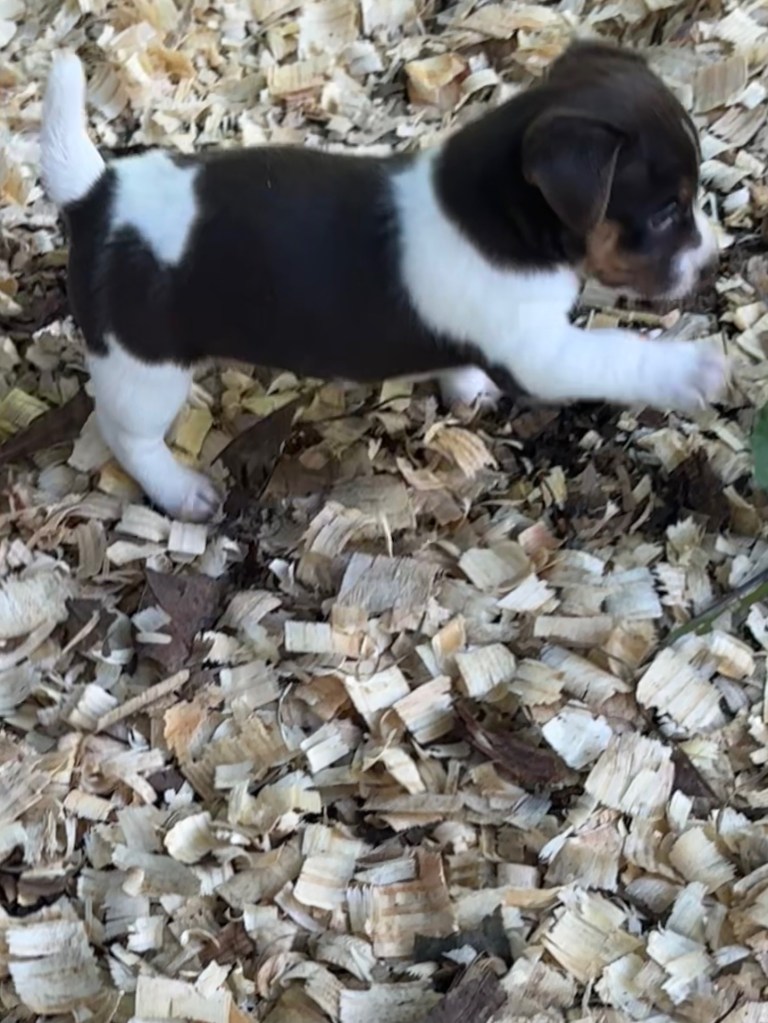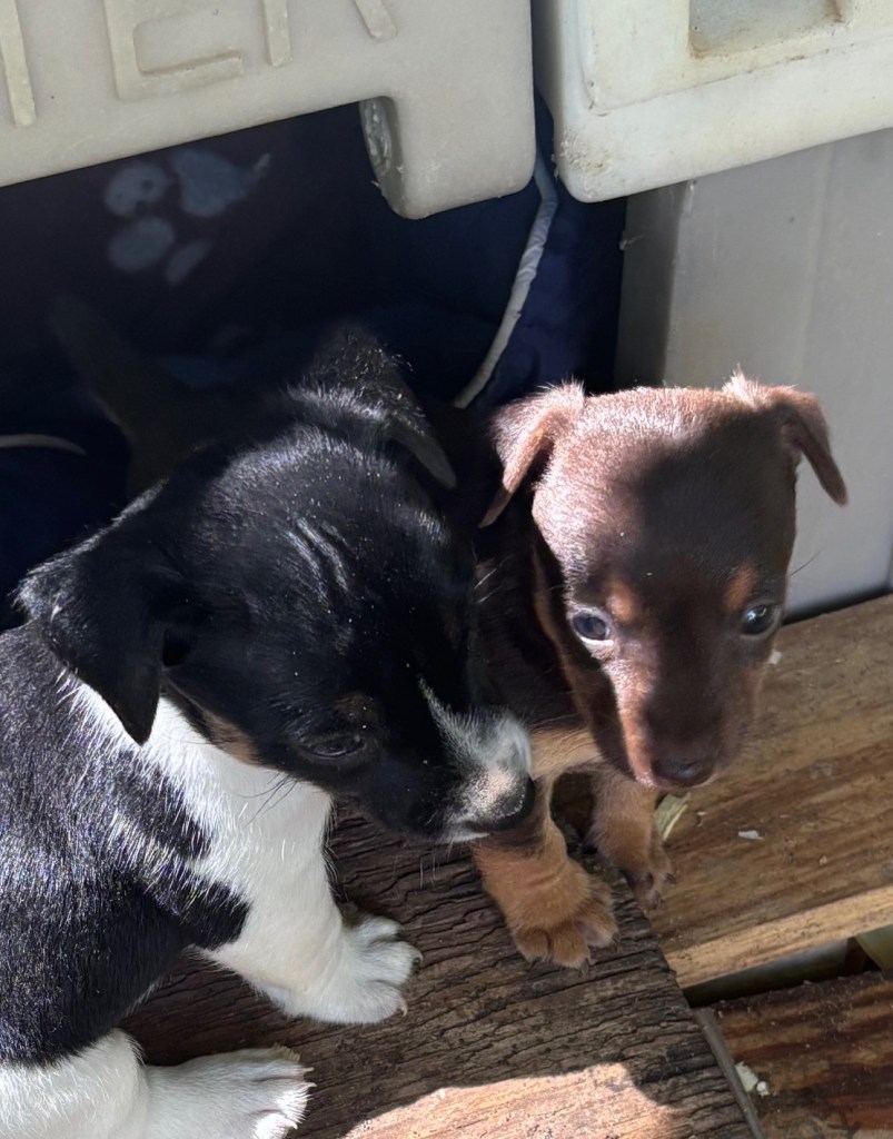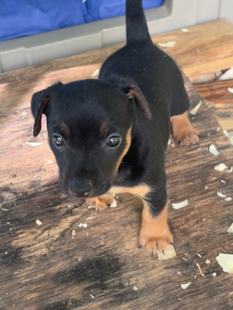The five pups were born on August 23,2025. We have one black & tan female, Esme, and her chocolate & tan sister, Elodie. We also have 3 males, one black & tan, with white, Elvis, and two chocolate & tan with white, Eddie & Enzo.